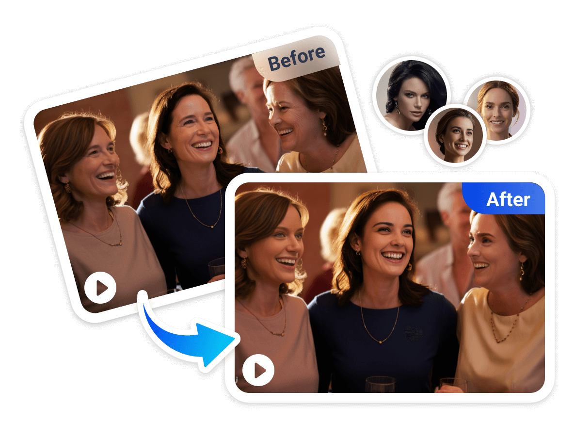 L'Échangeur de visages multiples Vidwud simplifie la procédure d'échange de visages en utilisant une technologie d'IA avancée pour identifier, supprimer et mélanger les visages. En un seul clic, vous pouvez obtenir un échange de visages multiples réaliste et naturel!